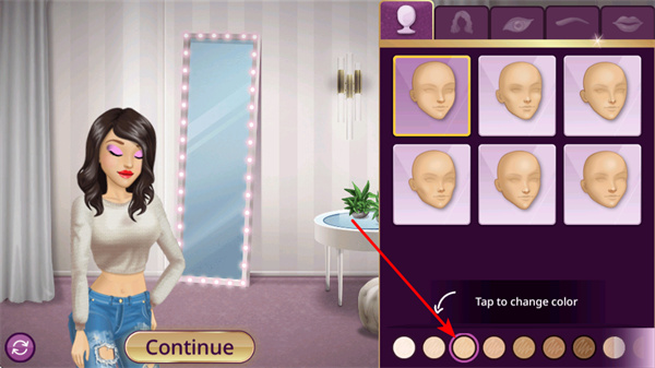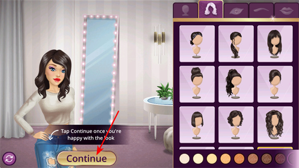 4、當對角色整體裝扮滿意后,點擊Continue按鈕,推進游戲流程,進下一個裝扮環(huán)節(jié)。