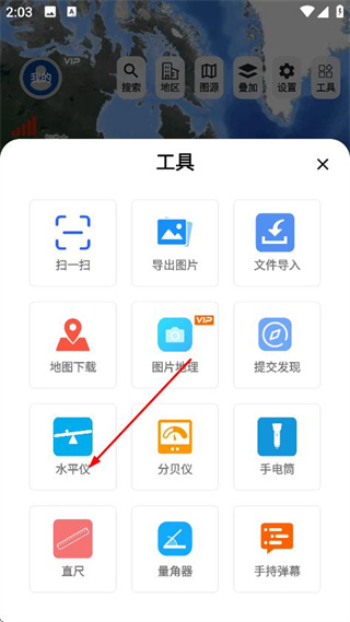 2、在工具選擇頁面,點擊水平儀,進(jìn)入水平儀功能頁面。