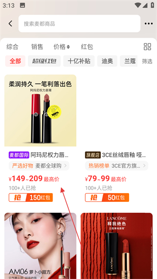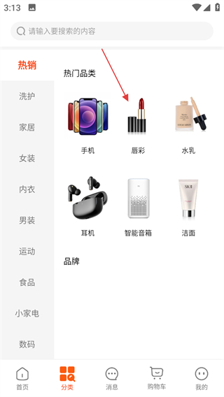 2、在分類頁(yè)面,點(diǎn)擊唇彩,進(jìn)入唇彩商品列表頁(yè)面。