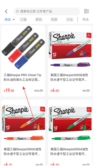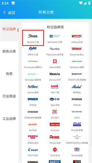 2、在所有分類頁面,選擇Sharpie三福品牌,進入該品牌商品列表頁面。