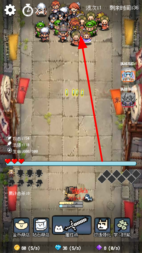 3、進(jìn)入戰(zhàn)斗場(chǎng)景,操控角色對(duì)敵人發(fā)起攻擊,利用提升后的屬性,更有效地打擊敵人,在波次進(jìn)攻中消滅更多敵人,推進(jìn)戰(zhàn)斗進(jìn)程。