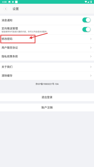 3、在設(shè)置頁(yè)面,點(diǎn)擊修改密碼選項(xiàng),進(jìn)入密碼修改頁(yè)面。