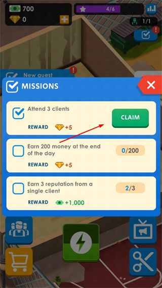 4、持續(xù)為顧客提供服務(wù),積累金幣和鉆石,提升店鋪的經(jīng)營狀況,推進(jìn)游戲進(jìn)程。