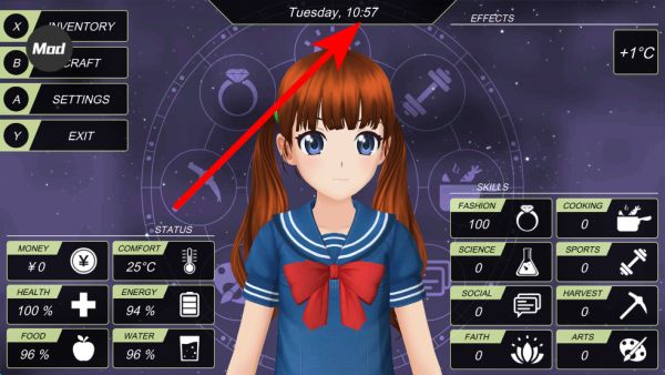 4、界面會顯示時間等信息,需留意時間變化,校園里的活動與可互動的對象會有不同,合理利用時間能更好解鎖校園里的各種游戲的玩法。
