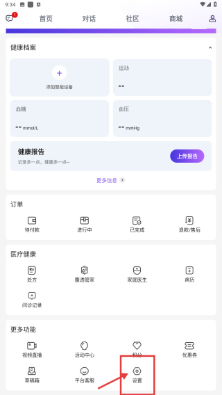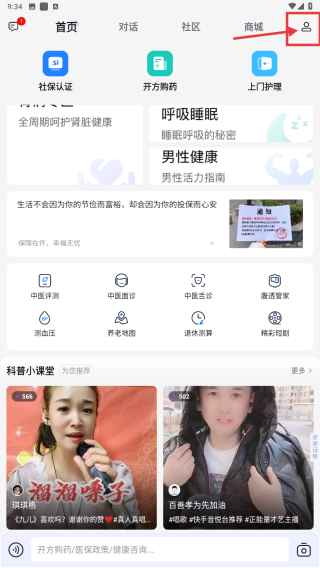 1、打開醫(yī)療健康類應(yīng)用,點擊右上角個人中心圖標(biāo),進(jìn)入個人中心頁面。