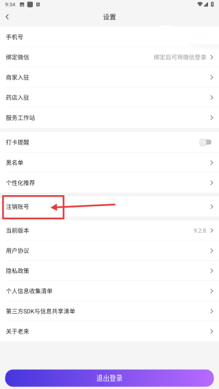 3、在設(shè)置頁面,點擊注銷賬號選項,進(jìn)入賬號注銷確認(rèn)頁面。