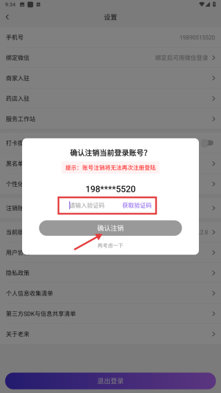 4、輸入驗證碼,點擊確認(rèn)注銷按鈕,完成賬號注銷操作。