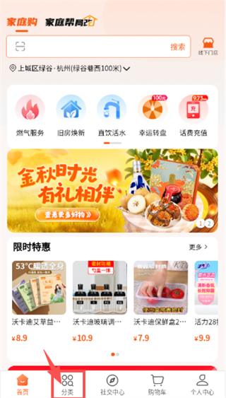 1、打開家庭服務類應用,點擊底部分類選項,進入商品分類頁面。