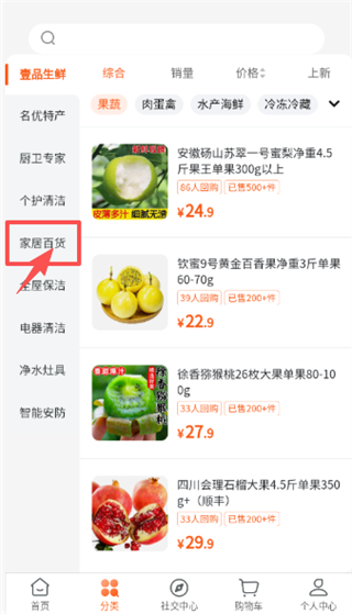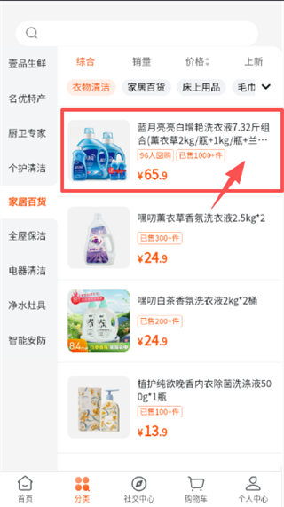 2、在分類頁面,選擇家居百貨分類,進入該分類的商品列表頁面。