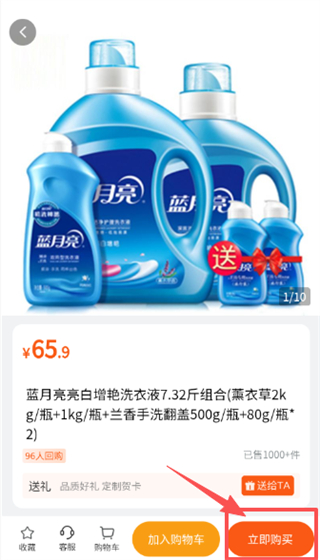 3、選擇藍月亮亮白增艷洗衣液7.32斤組合商品條目,進入商品詳情頁面。