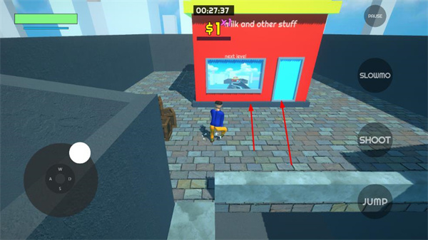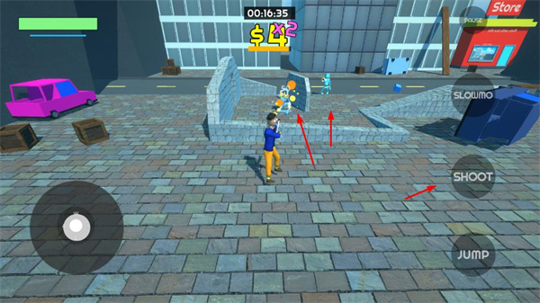 4、遇到敵人或需要戰(zhàn)斗的情況時,使用右側(cè)的SHOOT按鈕進行射擊,消滅敵人,推進游戲進程,體驗3D動作冒險的樂趣。