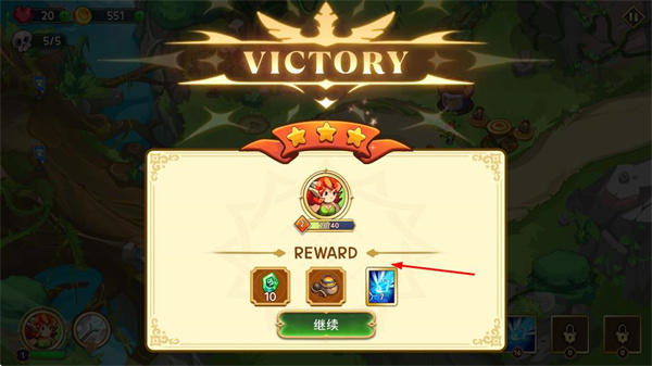 4、成功抵御所有敵人的進(jìn)攻后,即可獲得勝利,并獲得獎勵,之后可點擊繼續(xù)進(jìn)入下一關(guān)。