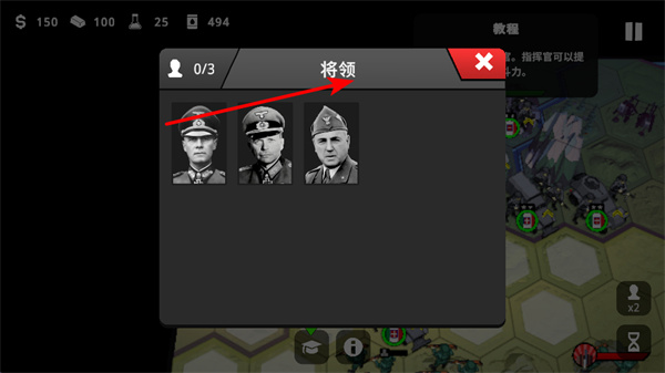 3、選擇將領(lǐng),將領(lǐng)可提升部隊?wèi)?zhàn)斗力,不同將領(lǐng)有不同屬性加成,需求選擇合適的將領(lǐng),增強作戰(zhàn)能力。
