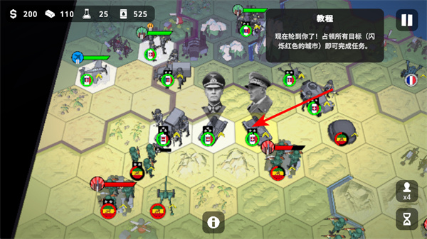 4、占領(lǐng)所有閃爍紅色的目標(biāo)城市,這是關(guān)卡任務(wù)的核心目標(biāo),需集中兵力逐個攻克,完成后即可通關(guān)。