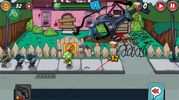 4、經(jīng)典塔防策略核心:保留塔防游戲的布局策略玩法,玩家需合理擺放防御設(shè)施、操控警察角色,在僵尸突破防線前將其消滅,考驗(yàn)戰(zhàn)術(shù)規(guī)劃能力。