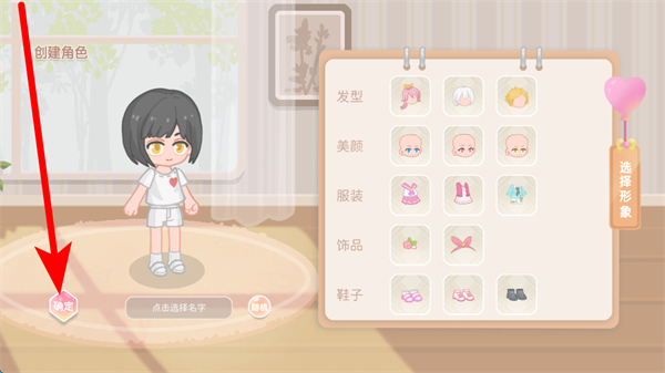 1、首先進(jìn)行角色創(chuàng)建,從發(fā)型、美顏、服裝等多個方面挑選,打造出心儀的角色形象,然后點擊確定,完成角色創(chuàng)建步驟。