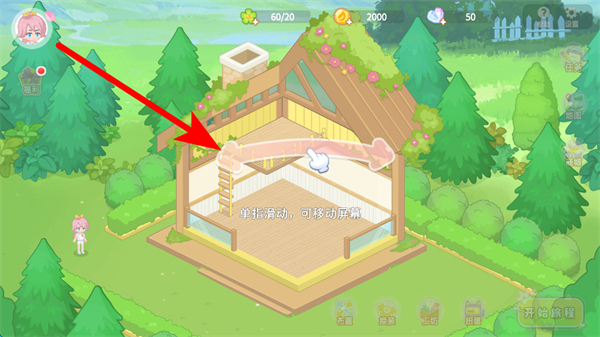 2、創(chuàng)建好角色后,可單指滑動屏幕移動視角,以便更好地查看家園場景內(nèi)的各個區(qū)域與元素,規(guī)劃家園布局。