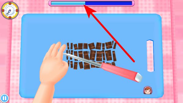 3、然后按照食譜步驟切割美食,留意上方進度條,把控好時間,確保美食能順利制作完成。