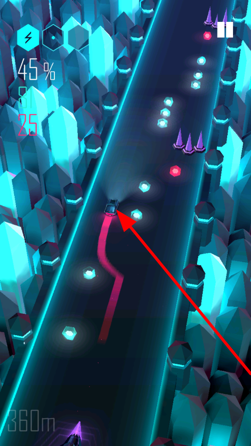 4、當(dāng)能量積攢滿一格時(shí),向下滑動(dòng)屏幕,賽車會(huì)釋放技能,對(duì)敵人發(fā)起攻擊,有效打擊敵人,取得更好的成績(jī)。
