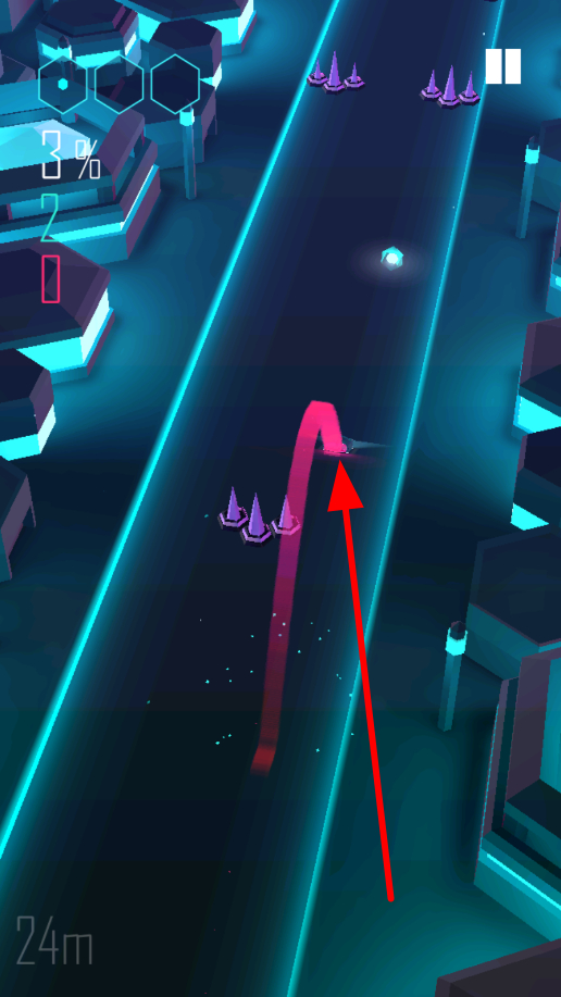 2、當(dāng)遇到需要跨越的障礙時(shí),往上滑動(dòng)屏幕,賽車會(huì)做出跳躍動(dòng)作,成功越過(guò)障礙,繼續(xù)在賽道上平穩(wěn)行駛。