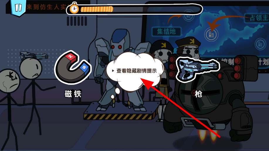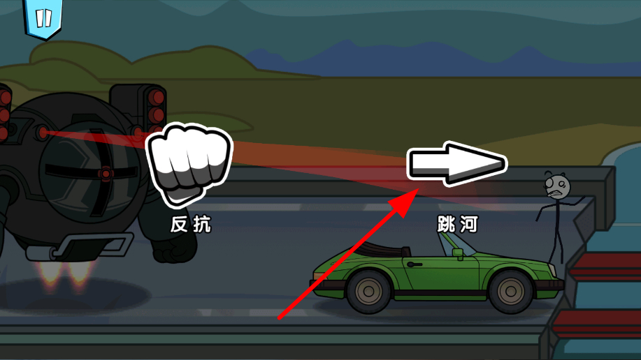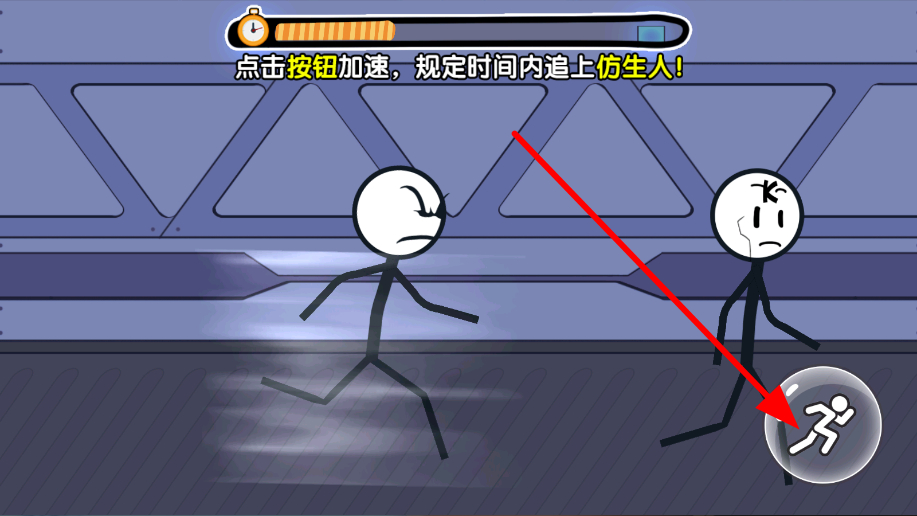 2、像要加速追趕目標(biāo)時,玩家需要點擊加速按鈕,能讓火柴人加快速度,朝著目標(biāo)前進(jìn),推動冒險進(jìn)程。
