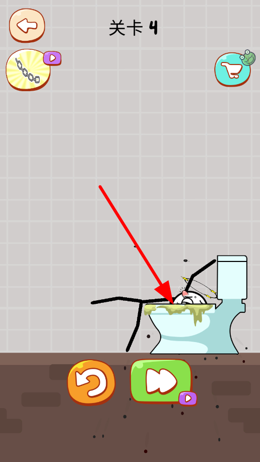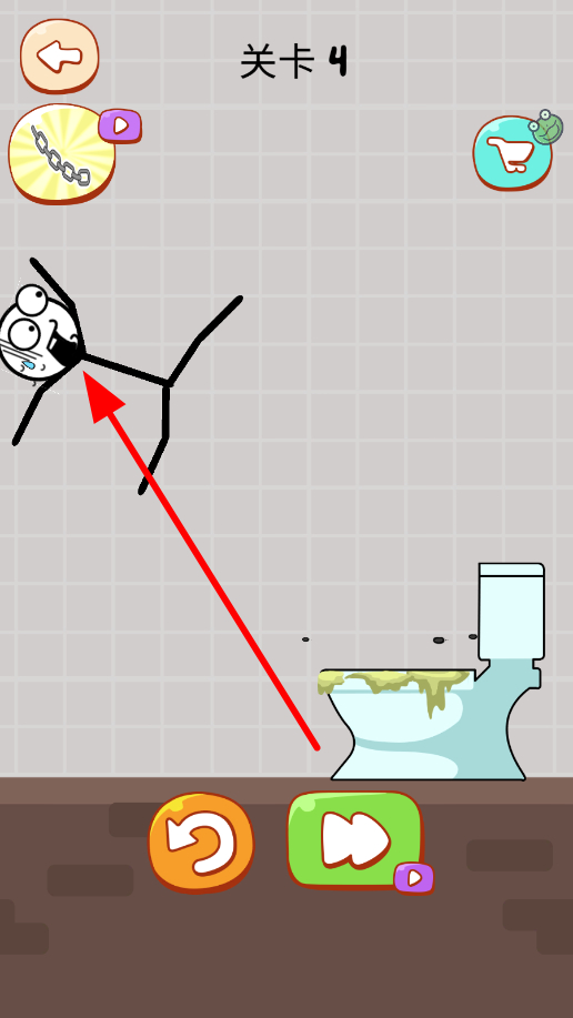 3、根據(jù)關(guān)卡要求,通過長按移動操作,精準(zhǔn)地把火柴人移動到馬桶處,使其進(jìn)入馬桶,完成這一關(guān)鍵通關(guān)步驟。
