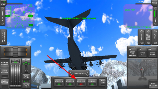 2、控制飛機引擎,點擊ENGINE 2等引擎按鈕,管理飛機引擎運行狀態(tài),保障飛機動力系統(tǒng)穩(wěn)定,應對突發(fā)狀況。