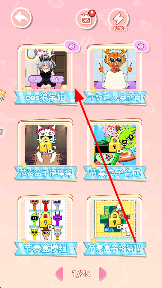 1、進(jìn)入游戲后,挑選想要挑戰(zhàn)的關(guān)卡,像cos狼學(xué)姐這類,點(diǎn)擊關(guān)卡圖標(biāo)就能進(jìn)入對(duì)應(yīng)的裝扮場(chǎng)景,開(kāi)啟搭配任務(wù)。