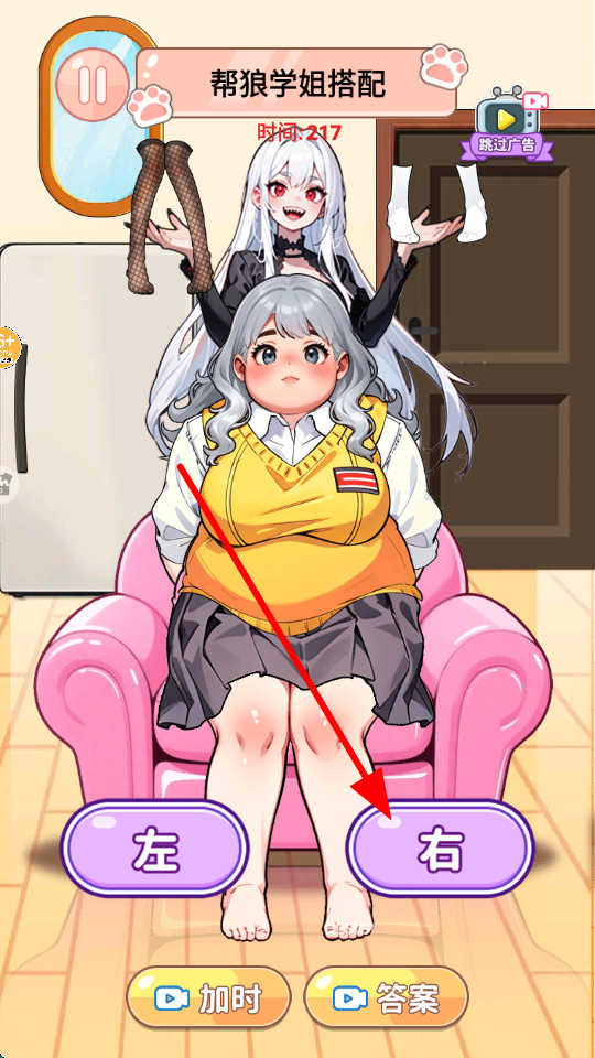 3、面對(duì)不同的搭配選項(xiàng),比如服飾左右選擇等,要結(jié)合角色風(fēng)格和關(guān)卡要求,慎重點(diǎn)擊對(duì)應(yīng)按鈕,確定搭配內(nèi)容。