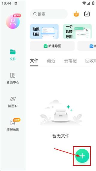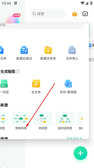 2、在彈出的操作選項(xiàng)中,點(diǎn)擊思維導(dǎo)圖,進(jìn)入思維導(dǎo)圖編輯頁面。