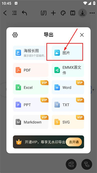 4、在導(dǎo)出選項(xiàng)中,點(diǎn)擊圖片,可將思維導(dǎo)圖以圖片形式導(dǎo)出。
