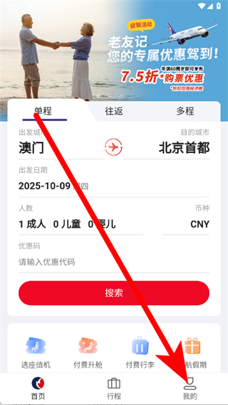1、打開(kāi)澳門(mén)航空APP,點(diǎn)擊底部我的。
