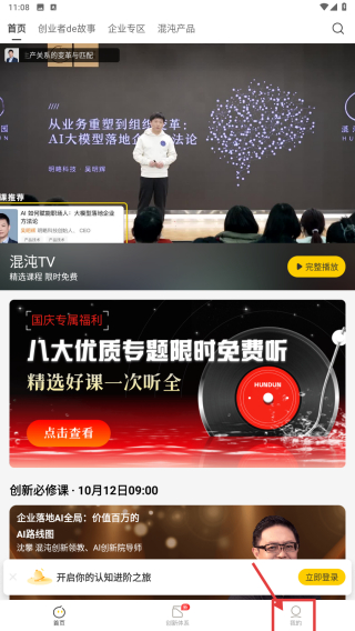 1、打開混沌學習類應用,點擊底部我的選項,進入個人中心頁面。
