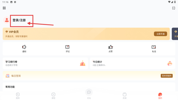 2、在個人中心,點擊登錄/注冊選項,進(jìn)入登錄注冊頁面。