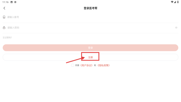3、在登錄注冊頁面,點擊注冊選項,進(jìn)入注冊頁面。