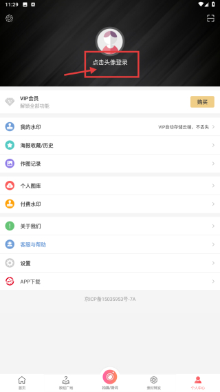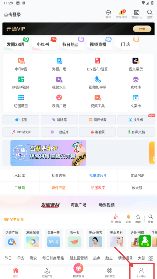 1、打開圖片編輯類應(yīng)用,點(diǎn)擊底部個(gè)人中心選項(xiàng),進(jìn)入個(gè)人中心頁面。