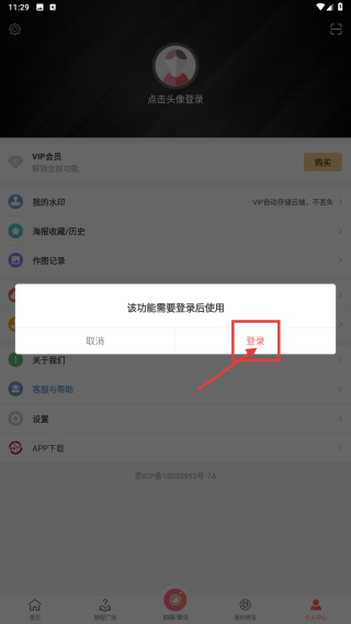 2、在個(gè)人中心,點(diǎn)擊點(diǎn)擊頭像登錄選項(xiàng),彈出登錄提示框。