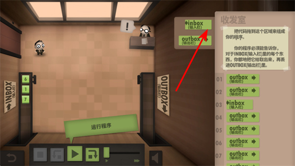 4、點擊inbox輸入欄,接收輸入的物品,為后續(xù)的處理和輸出操作提供素材,是收發(fā)流程的起始步驟。