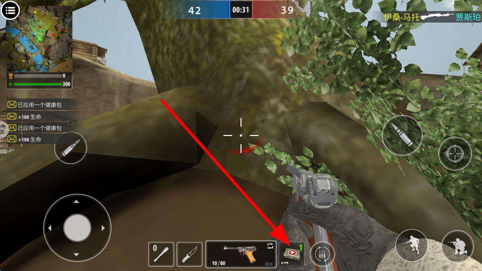 3、當自身血量較低,及時使用醫(yī)療包恢復血量,保證后續(xù)有足夠的生命值參與戰(zhàn)斗,避免因血量不足過早被淘汰。