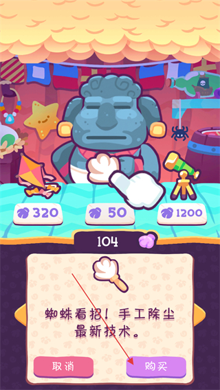 3、在商店中,選擇心儀的物品,比如手工除塵,點(diǎn)擊購(gòu)買(mǎi)按鈕,消耗貝殼進(jìn)行購(gòu)買(mǎi)。