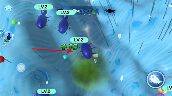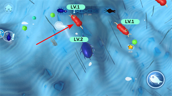 2、捕食低級蟲子,控制LV.2蟲子捕食LV.1蟲子,積累經(jīng)驗,這是升級進化關(guān)鍵。