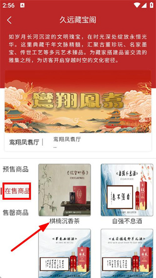 3、在久遠(yuǎn)藏寶閣頁面,點(diǎn)擊在售商品下的商品,進(jìn)入商品詳情頁面。