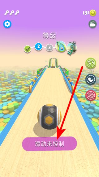 1、進(jìn)入游戲后,按照提示滑動(dòng)屏幕來(lái)控制球體在賽道上的移動(dòng)方向,讓球體能夠順利在賽道上前行,避開(kāi)掉落風(fēng)險(xiǎn),朝著目標(biāo)前進(jìn)。