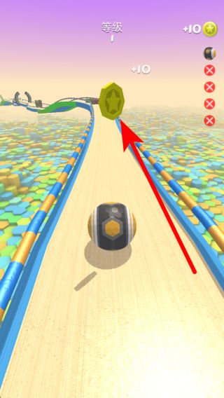 2、在賽道行駛過(guò)程中,留意賽道上的金幣等物品,操控球體去收集它們,收集到的金幣等會(huì)顯示在右上角。