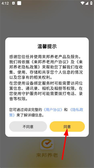 1、在溫馨提示彈窗中,點(diǎn)擊同意,進(jìn)入登錄注冊頁面。