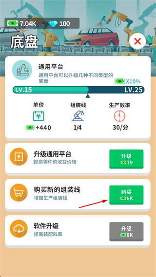 1、可對(duì)汽車底盤相關(guān)的通用平臺(tái)進(jìn)行升級(jí),提升零件收益價(jià)格;也能購(gòu)買新的組裝線,增加生產(chǎn)線數(shù)量。