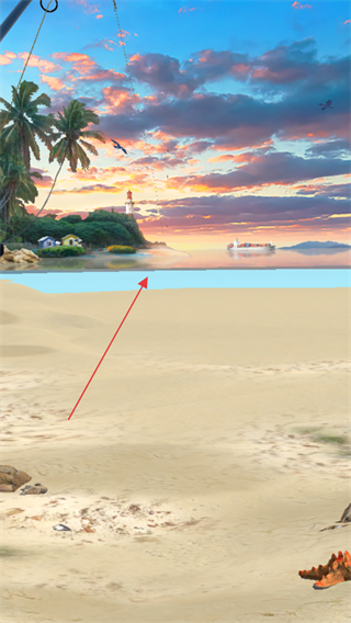 1、進(jìn)入游戲,來到海灘場景,準(zhǔn)備開始釣魚。