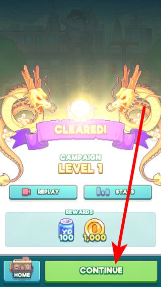 4、成功通關(guān)后,點(diǎn)擊CONTINUE按鈕,可繼續(xù)推進(jìn),前往下一個(gè)場景或關(guān)卡,持續(xù)體驗(yàn)格斗冒險(xiǎn)。