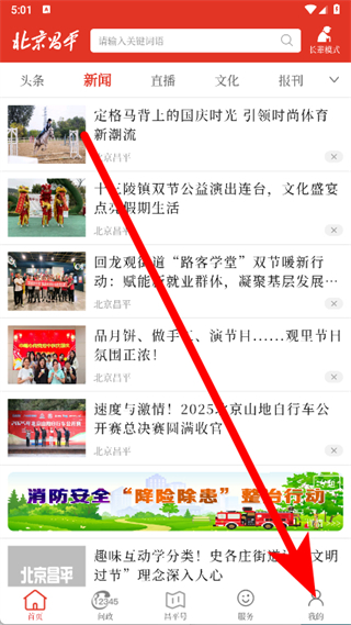1、打開(kāi)北京昌平APP,點(diǎn)擊底部我的。