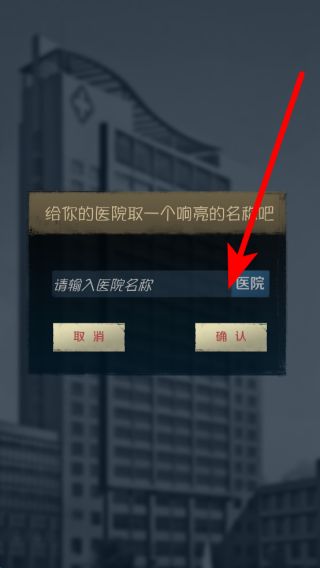 1、開局時,會提示給醫(yī)院取一個響亮的名稱,輸入好名稱后點擊確認,醫(yī)院命名環(huán)節(jié)就完成。